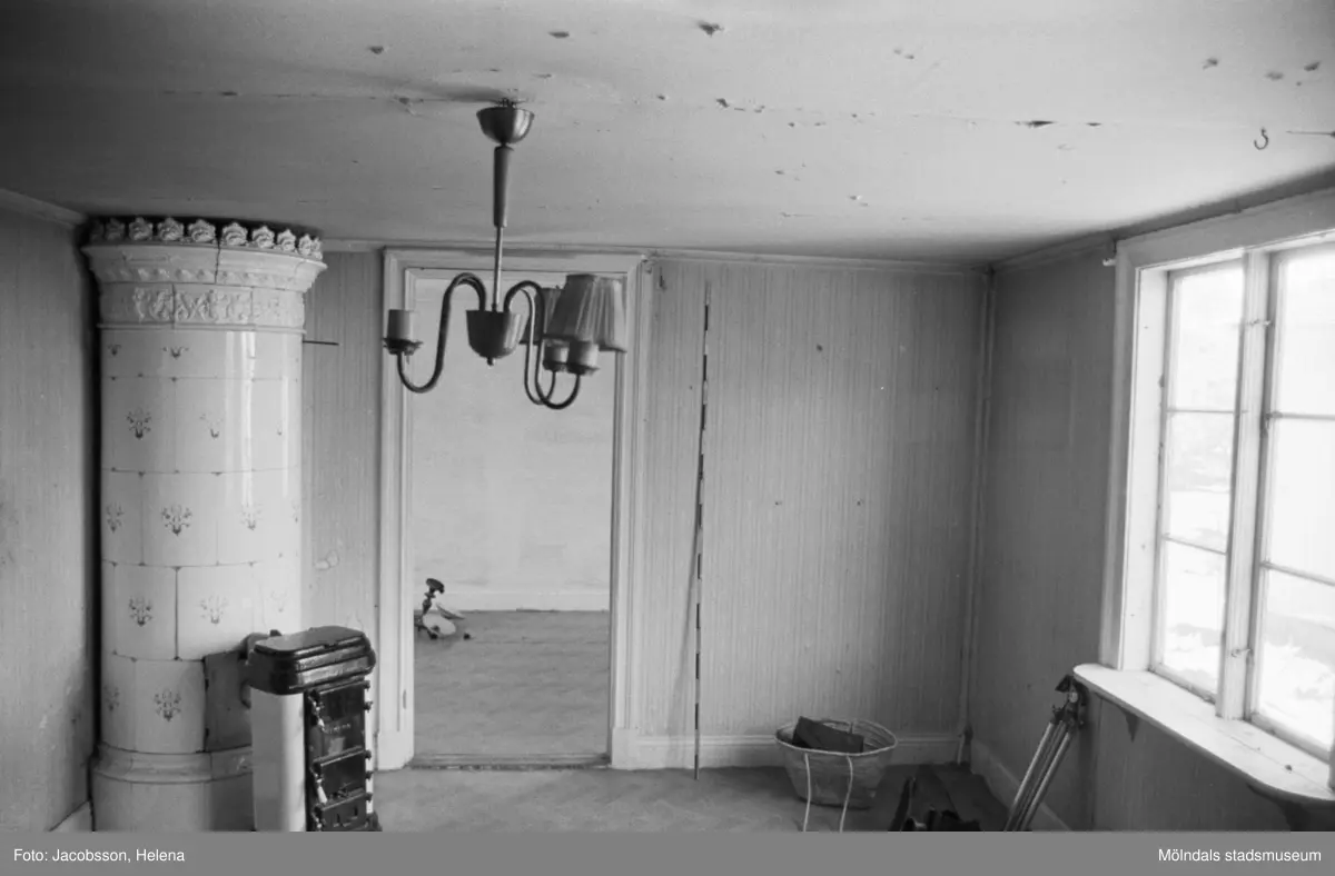 Roten M 9, årtal okänt. Omöblerat bostadsrum med kakelugn.