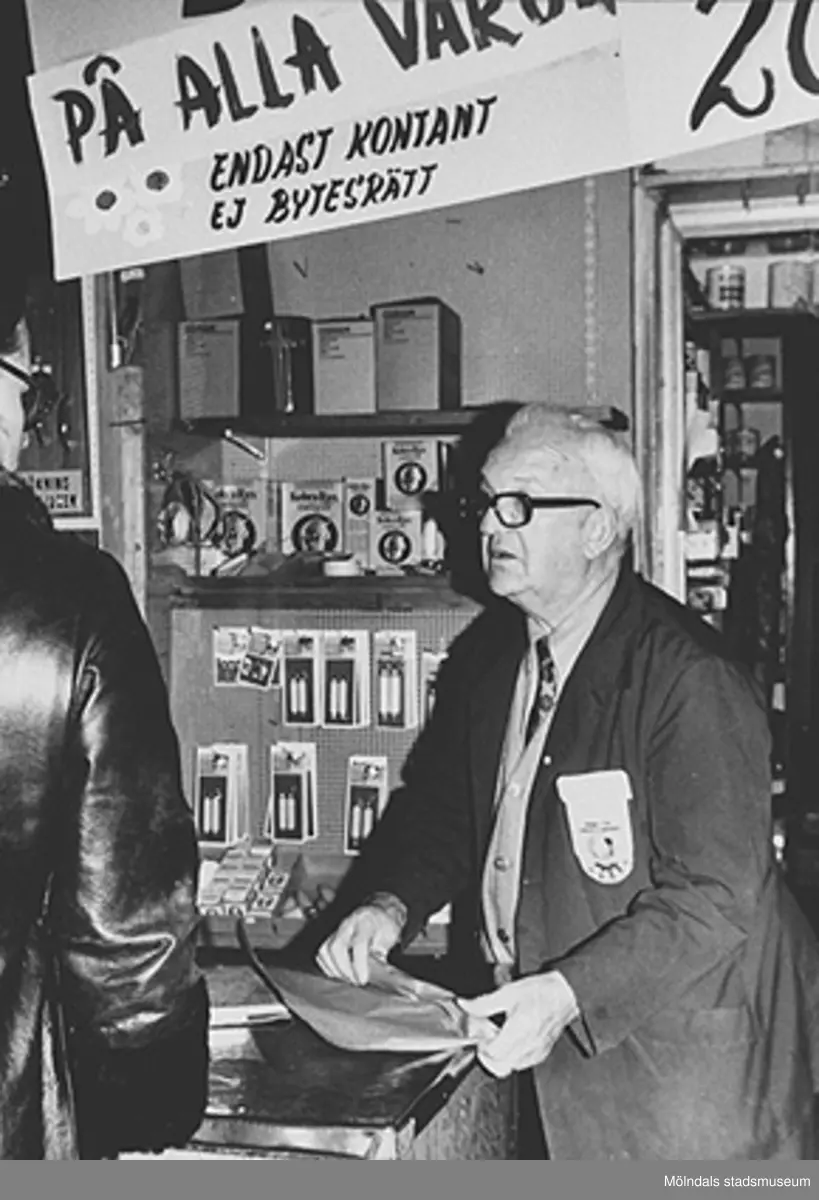 Bröderna Karlssons Järn-Färghandel är under utförsäljning 1973. "20% på alla varor. Endast kontant. Ej bytesrätt."