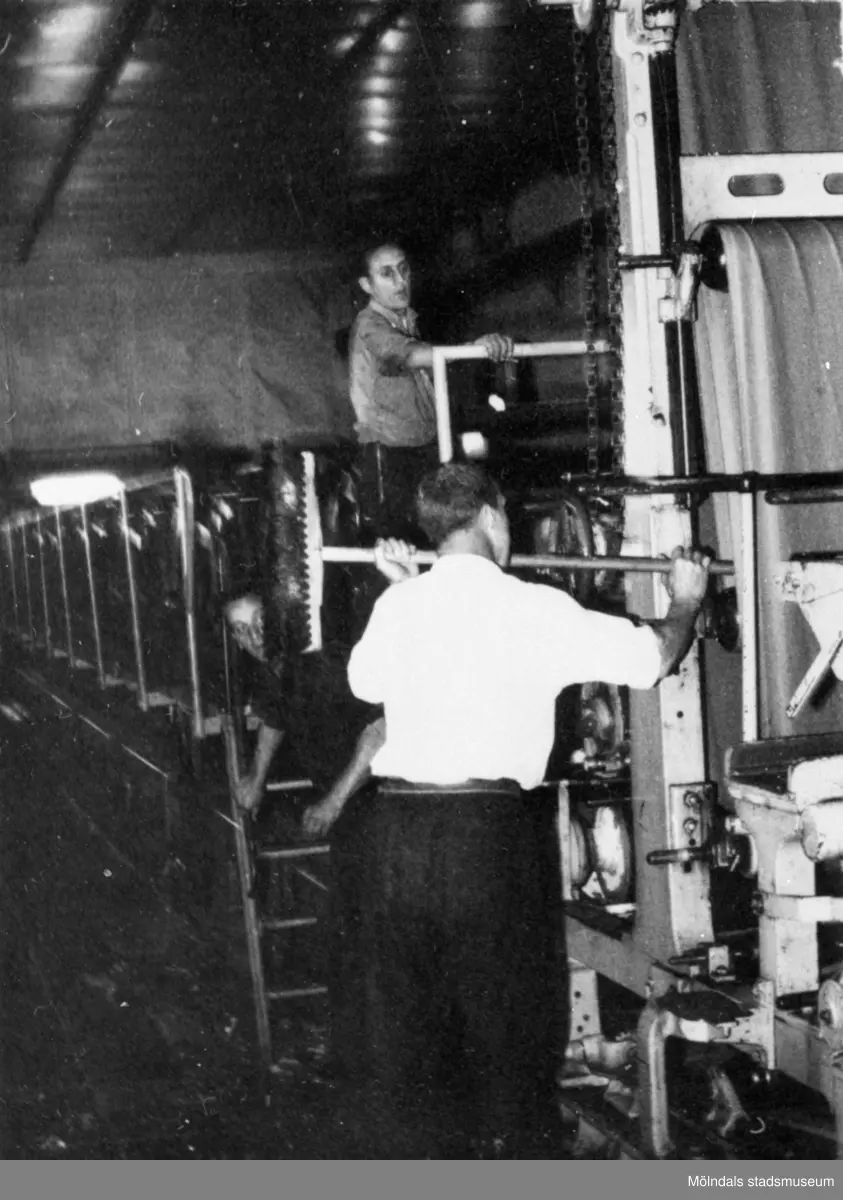 Kurt Floman vid Tredje pressen vid Pappersmaskin 10 på Papyrus, 1962.