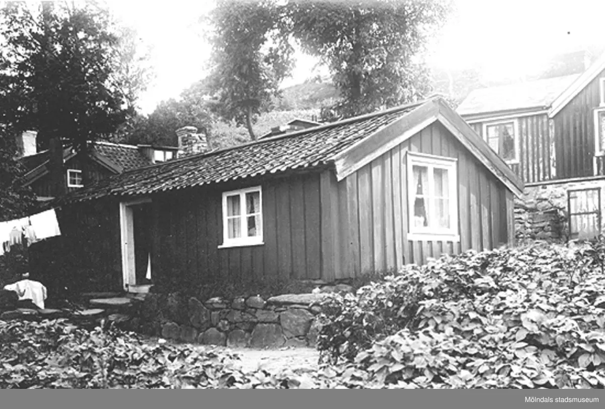 Gökebo`t och i bakgrunden Lompe-Svantes hus, år 1920. Husen låg i början av Pixbovägen (gamla Roten I), omedelbart intill den nuvarande uppfartsvägen mot Stensjöbacke.