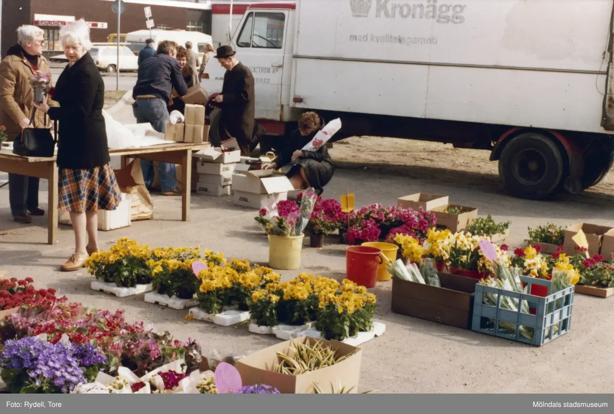 Torghandel vid Uddängstorget i Åby, Mölndal, på 1970-talet.