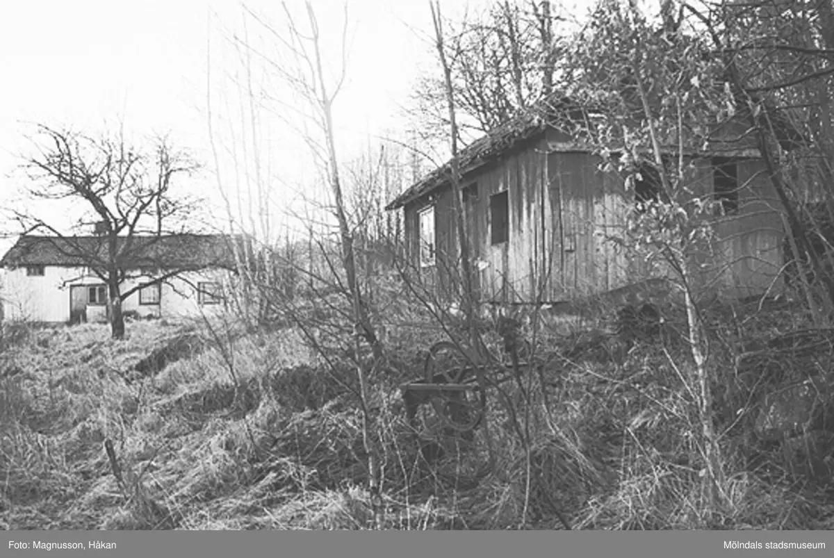 Titel: Bostadshus med uthus på Tållered 1:8 i Tållered, februari 1991. Fastigheten ägdes av Werner Karlsson (död 1990).