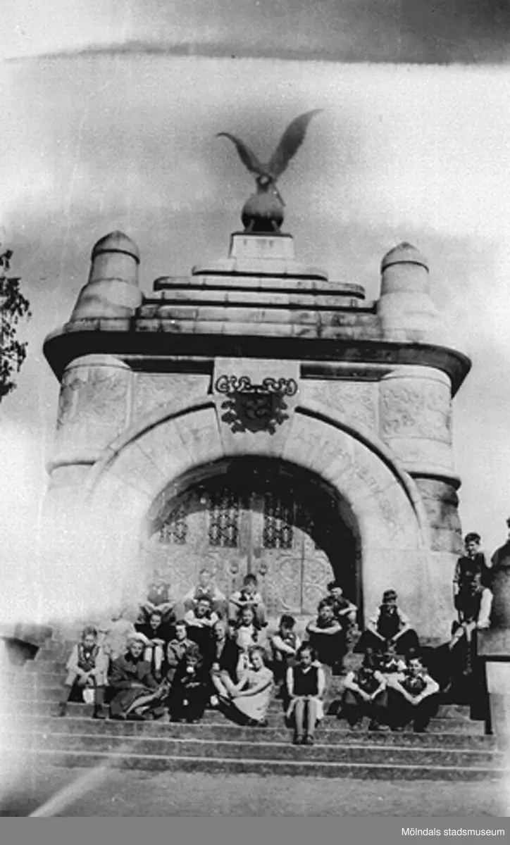 På skolresa i Filipstad med besök i Nykroppa valsverk och Persbergs gruva. Inkvarteringen var ordnad i en lada i Kalhyttan strax utanför staden, och maten intogs på Stadshotellet. Lärare: Sven Flodén. Fotot märkt 6. Filipstad 2/6 1939.