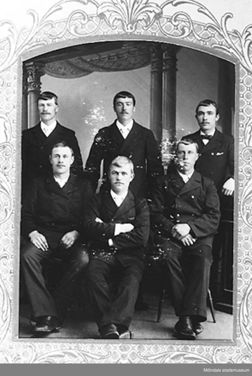 Fem finklädda unga män, Fjällbacka 1890-tal. Carl Krantz (morfar till givaren) står överst till höger.