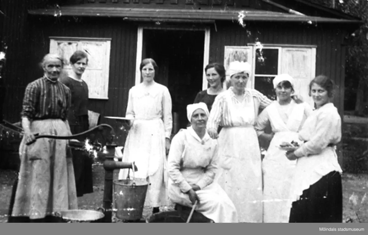 Kvinnorna är samlade vid vattenpumpen för gemensam tvättdag, år 1921.