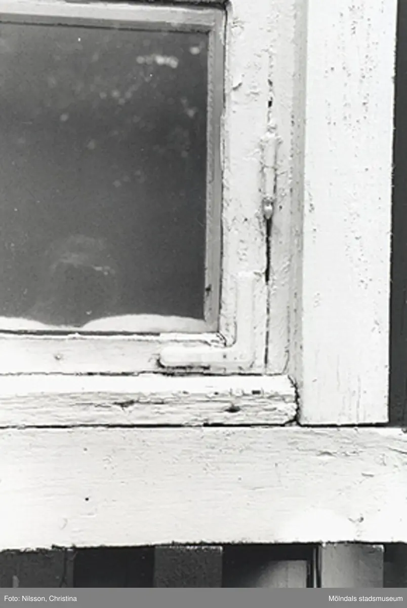 Röda huset, Grevedämmet, Kvarnfallet 31, Mölndal hösten 1994. Byggnadsdetalj: del av fönsterlist.