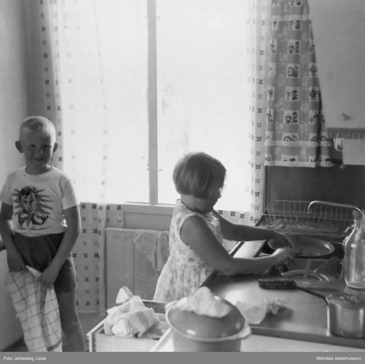 Två barn som diskar, Ulf och Marita Jerkeskog, 1960.