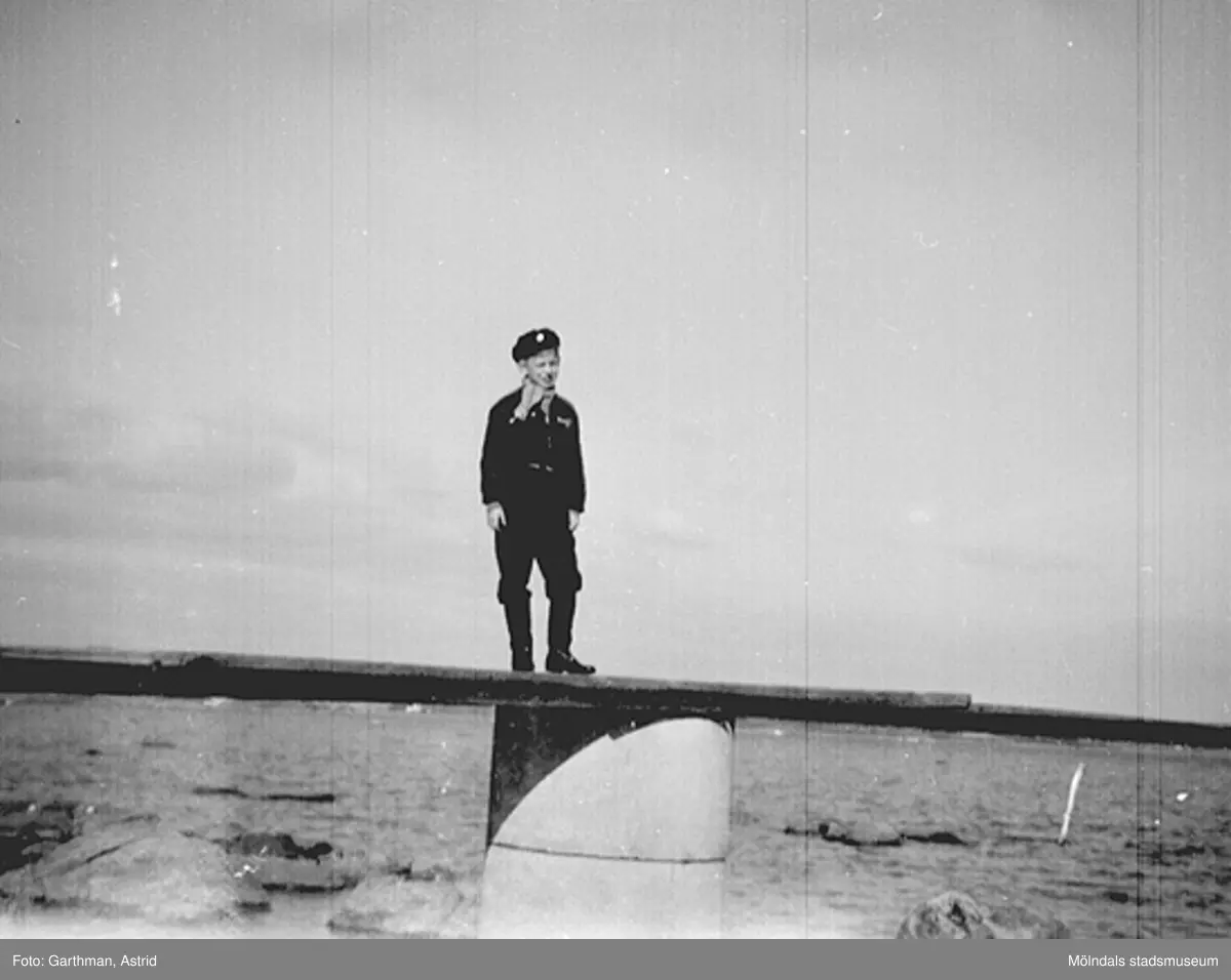 Lars Karlsson (kusin till Alf Garthman) står på en brygga vid Näset. 1950-tal.