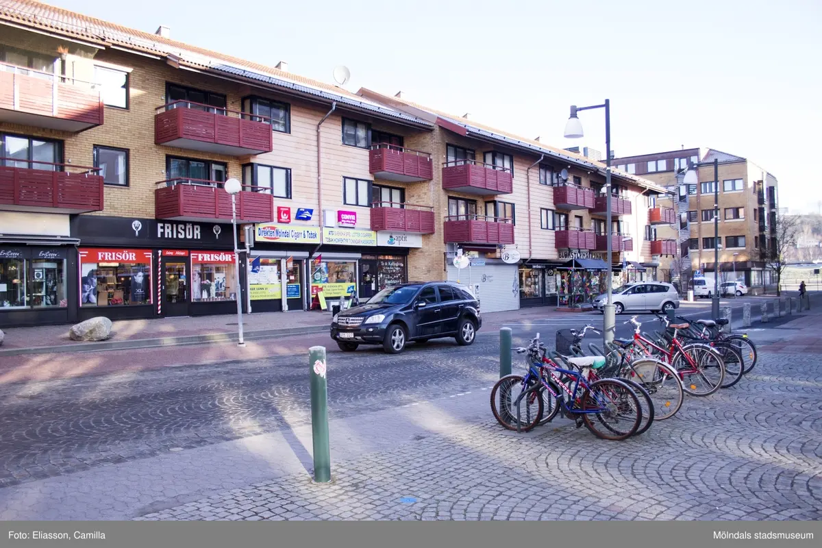 Bergmansgatan sedd från Mölndals torg, år 2015. Bild 1-2: Bergmansgatan 2-6. Bild 3: Bergmansgatan 2 (Blomstermakarna). Bild 4: Bergmansgatan 8- osv. Dokumentation av platsen innan rivning och nybyggnation.