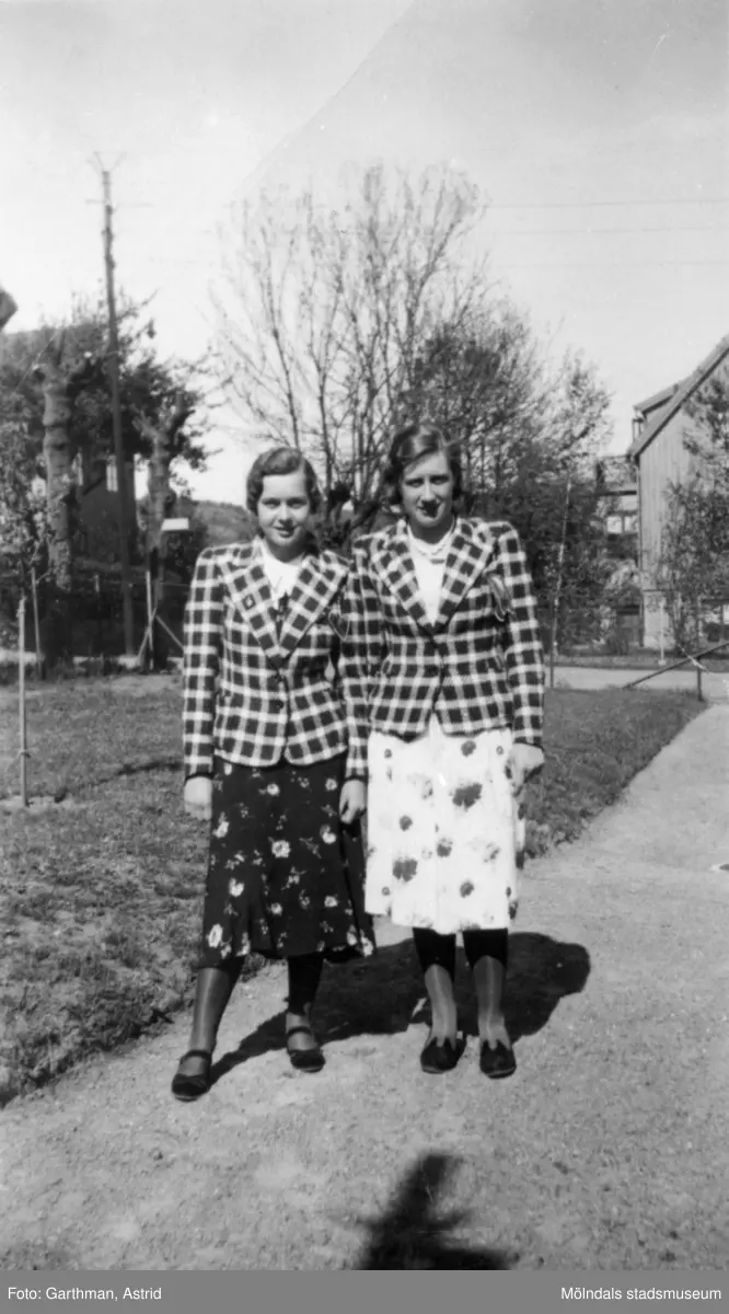 Astrid Garthmans (född Karlsson) fastrar; Ester och Aina Karlsson. Mölndal, 1930-tal.