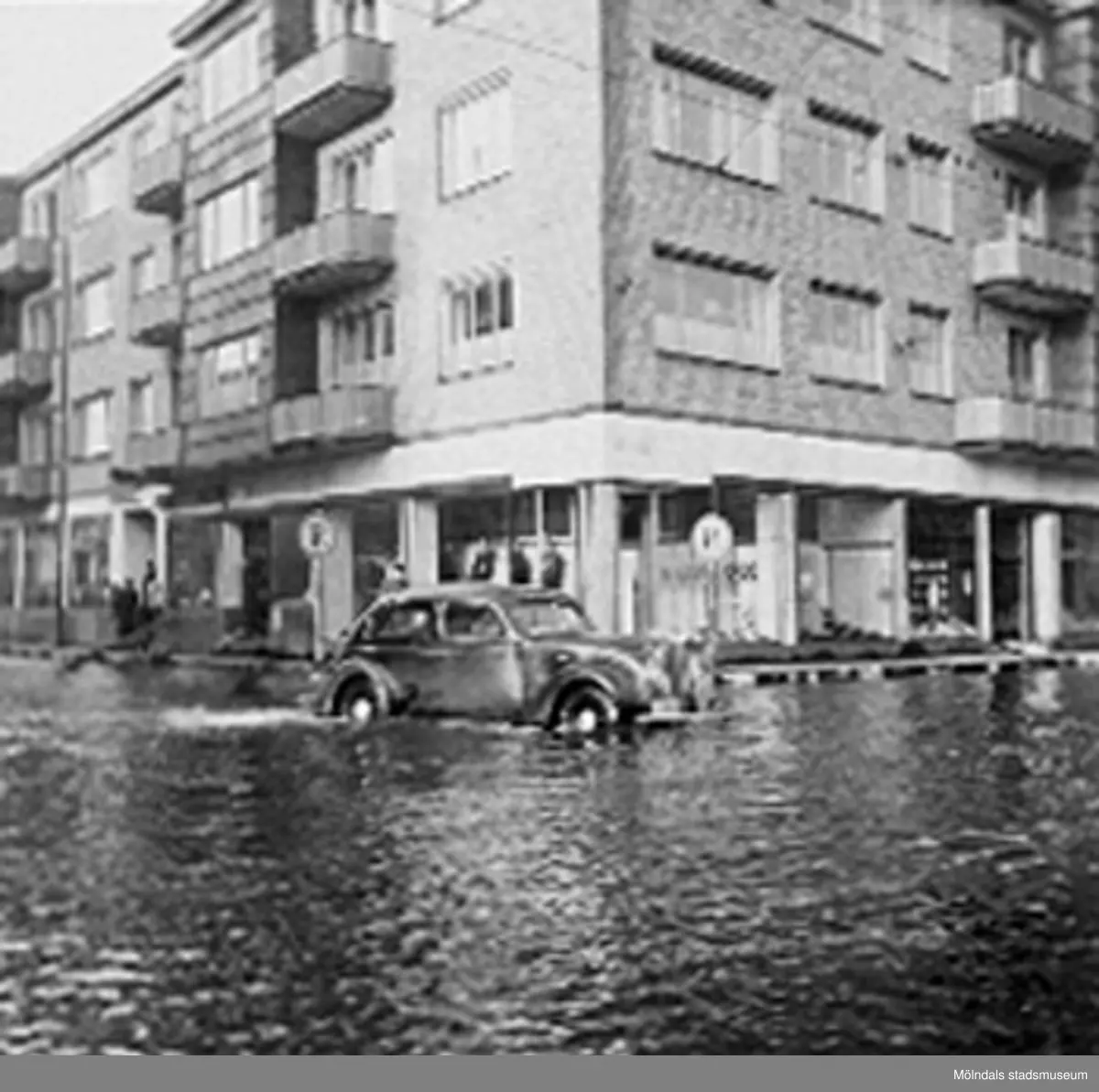 Bilden är tagen vid översvämningen i Mölndalsbro, februari 1943.