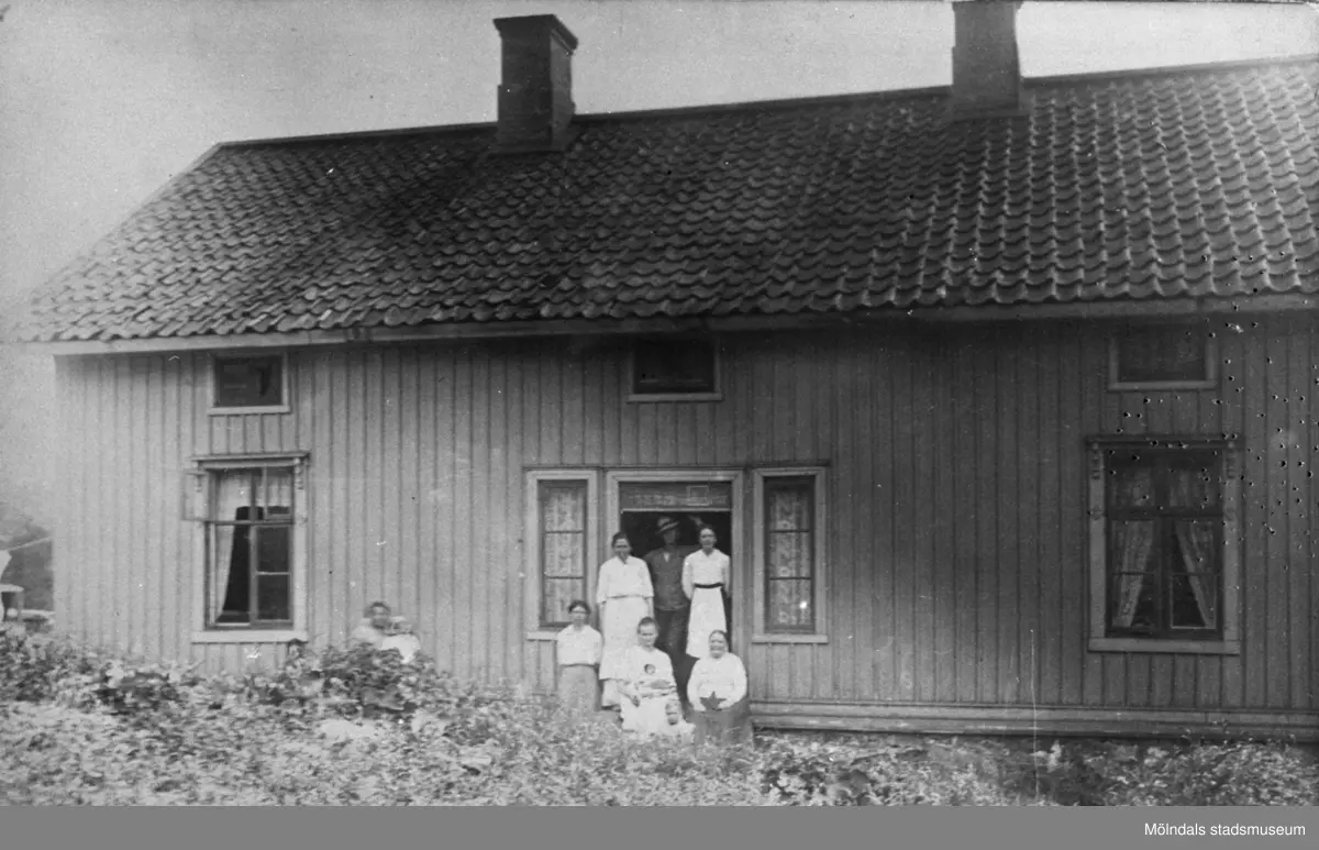 Familjen Hansson utanför deras hem "Glädjen" i Mölndals Kvarnby år 1917.
