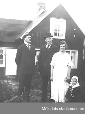 Fässbergsgatan 39 i Toltorpsdalen, Mölndal, ca 1920-tal. Barnet på bilden heter Holger Hansson. Huset i bakgrunden är hans mosters.