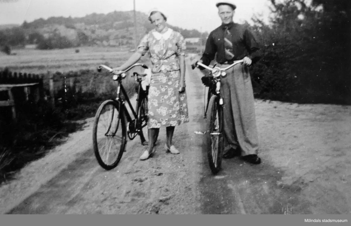 Sonja och Arvid Svensson är ute och cyklar, 1940.