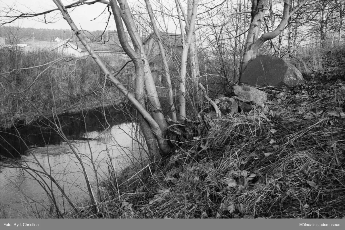 Stenskodd "flottningsplats" vid Lindomeån 1991. I närheten ligger Werners fabriker.