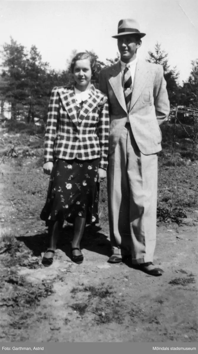 Ester Karlsson ("fotograf" Astrid Garthmans faster) med fästmannen Valter. Mölndal, 1930-tal.