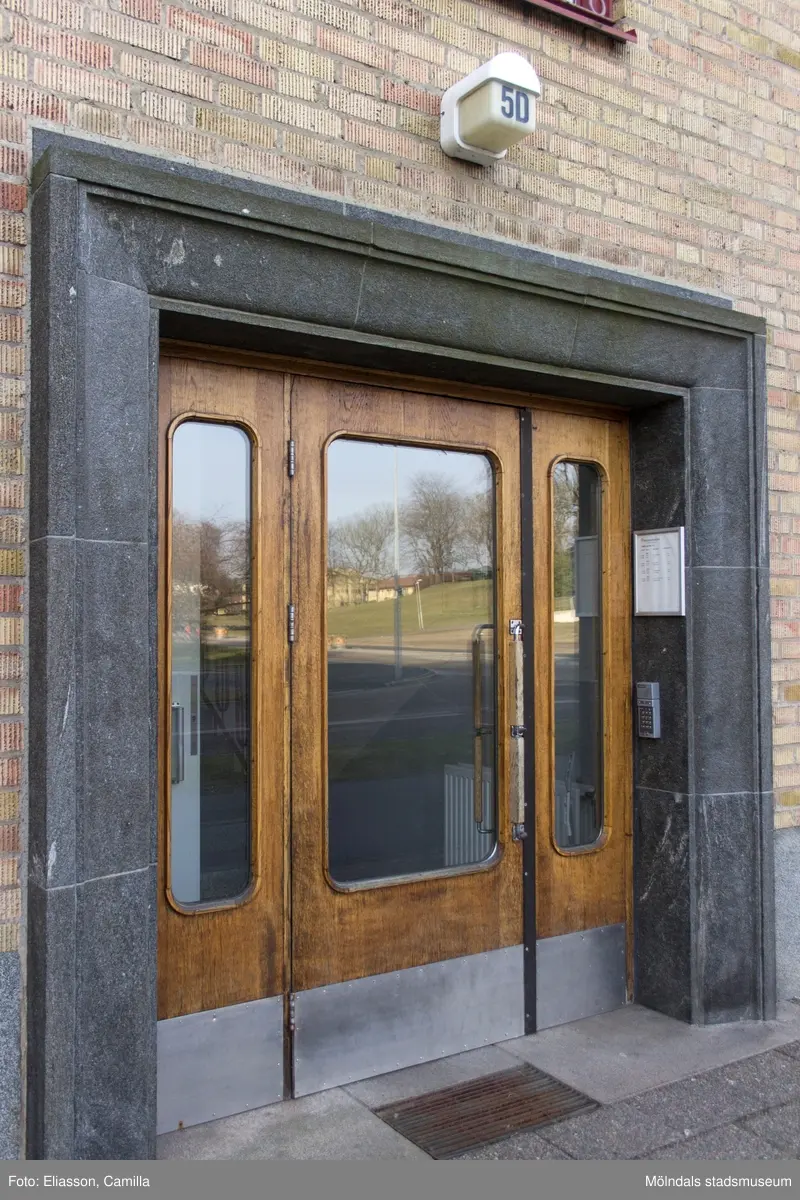 Tempelgatan, år 2015. Bild 1: entrédörr till Tempelgatan 5D. Bild 2: närbild av samma entrédörr. Bild 3: entrédörr till Tempelgatan 3B. Bild 4: balkonger på byggnaden. Dokumentation av platsen innan rivning och nybyggnation.