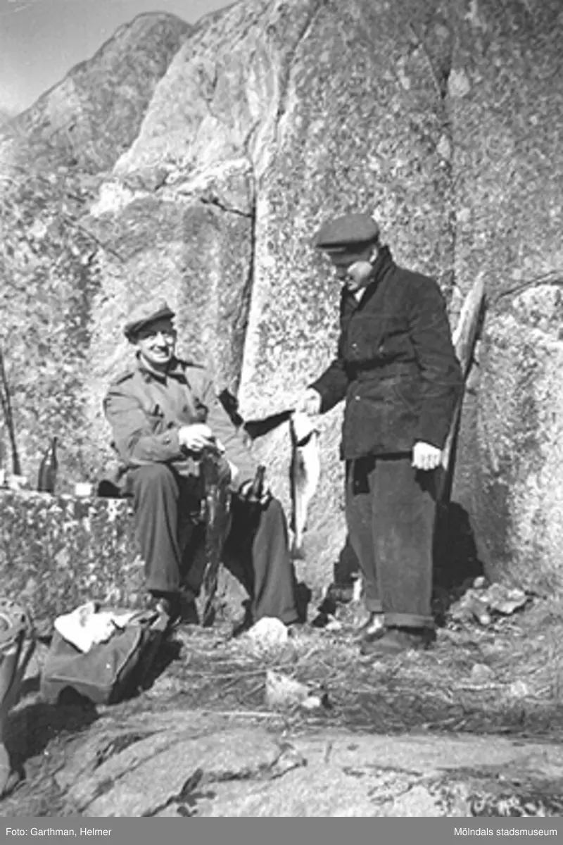 Från vänster: Arne Jansson och Alvan Karlsson. Fiskekompisar och arbetskompisar till givarens far Helmer Garthman. Näset, 1960-tal.