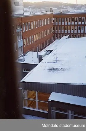 Astra Hässle AB, Hus M, sett österifrån. Pepparedsleden 1, Tingshuset 4, Östra Balltorp, december 1998. Relaterade motiv: 2004_1107 - 1108.