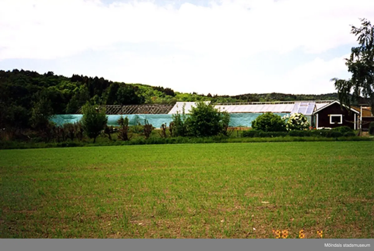Rivningsdokumentation av en f d handelsträdgård vid Kålleredsgårdsvägen, Heljered 3:18, Apelgården i Kållered 1998-06-04. Relaterade motiv: 2004_1189 - 1191.