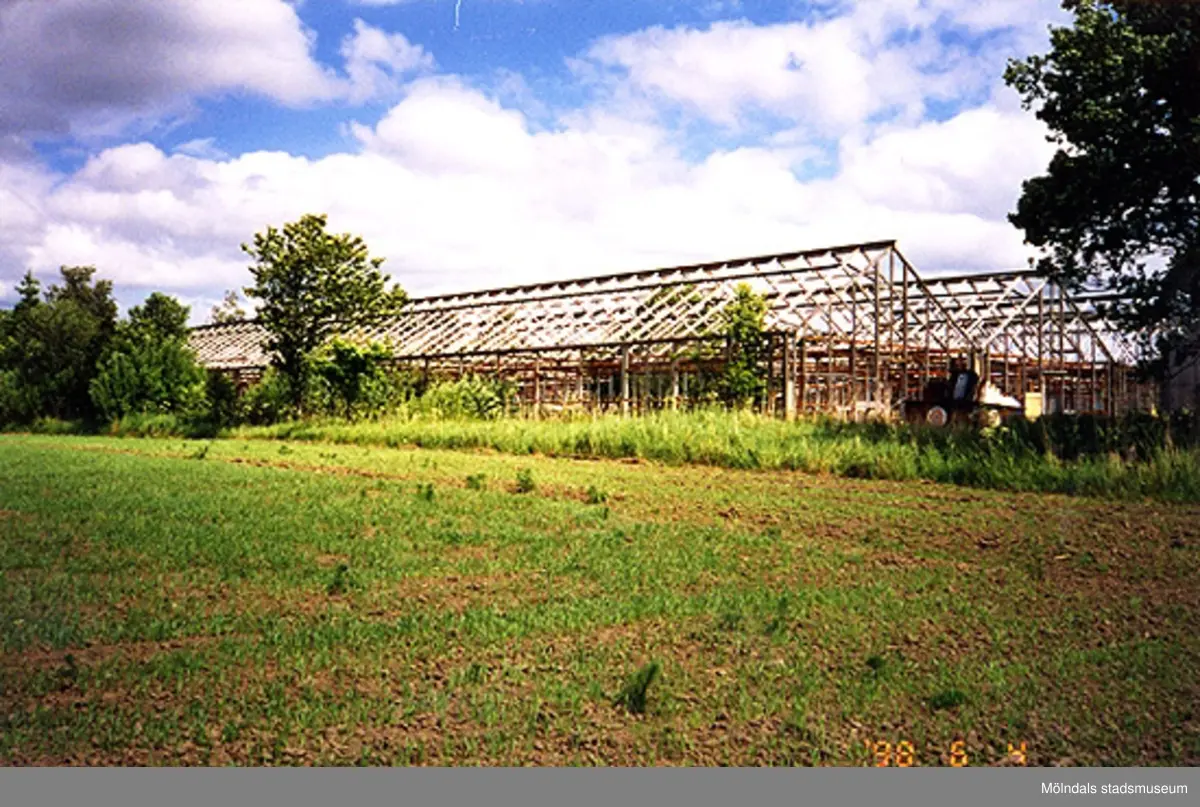 Rivningsdokumentation av en f d handelsträdgård vid Kålleredsgårdsvägen, Heljered 3:18, Apelgården i Kållered 1998-06-04.