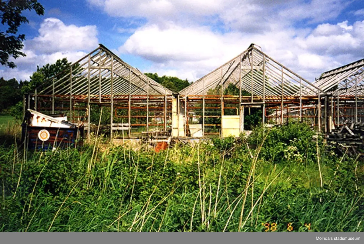 Rivningsdokumentation av en f d handelsträdgård vid Kålleredsgårdsvägen, Heljered 3:18, Apelgården i Kållered 1998-06-04.