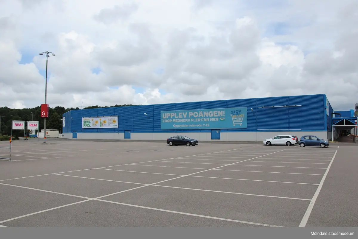 Byggnadsdokumentation av varuhuset Coop Forum i Kållered med adress Ekenleden 4, Våmmedal 2:158, som fått rivningslov. Exterörfotografi från söder den 5/7 2016.