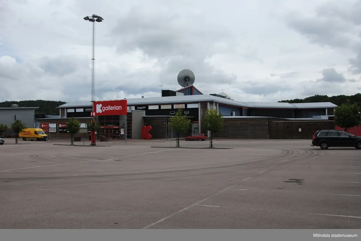 Byggnadsdokumentation av affärscentrum K-gallerian i Kållered med adress Ekenleden 6, Våmmedal 2:158, som fått rivningslov. Exterörfotografi från väster den 5/7 2016.