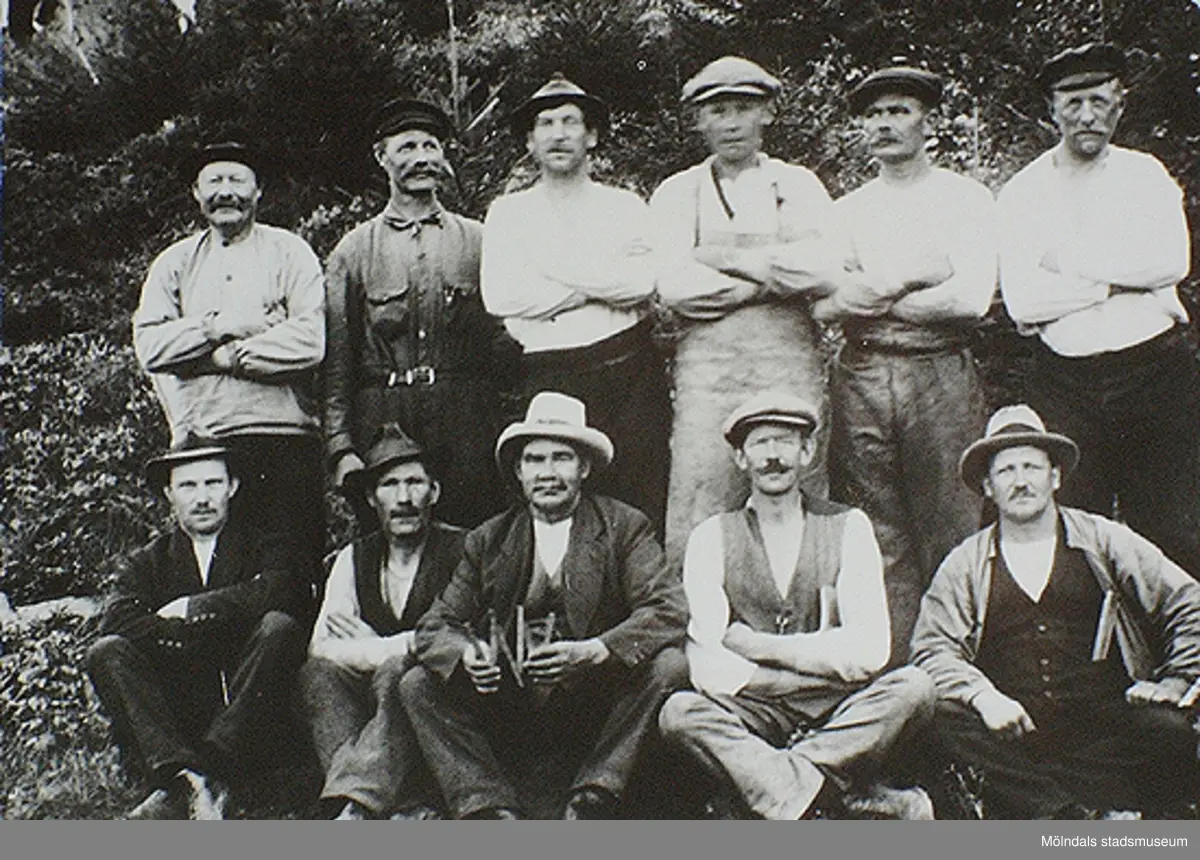 Elva uppställda stenarbetare