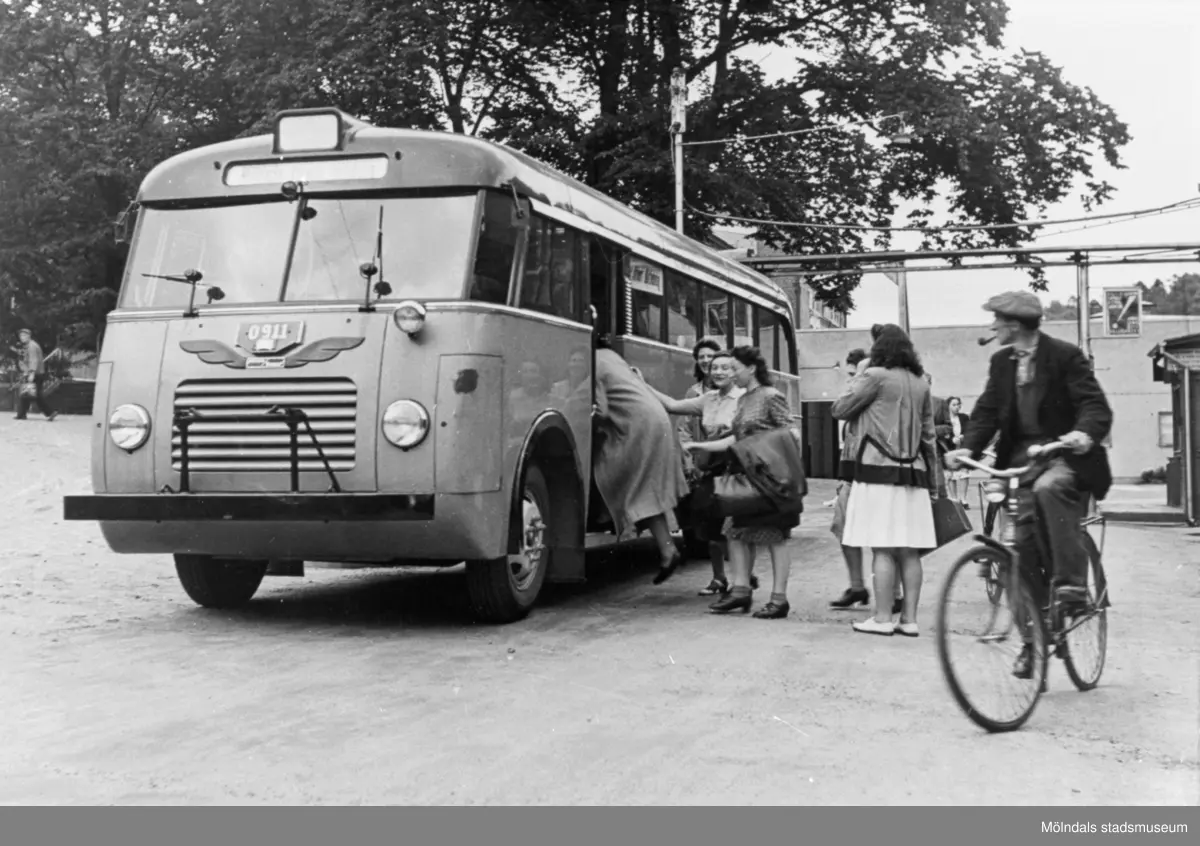 Personalbussen vid AB Mölnlycke fabriker, cirka 1950-talet.