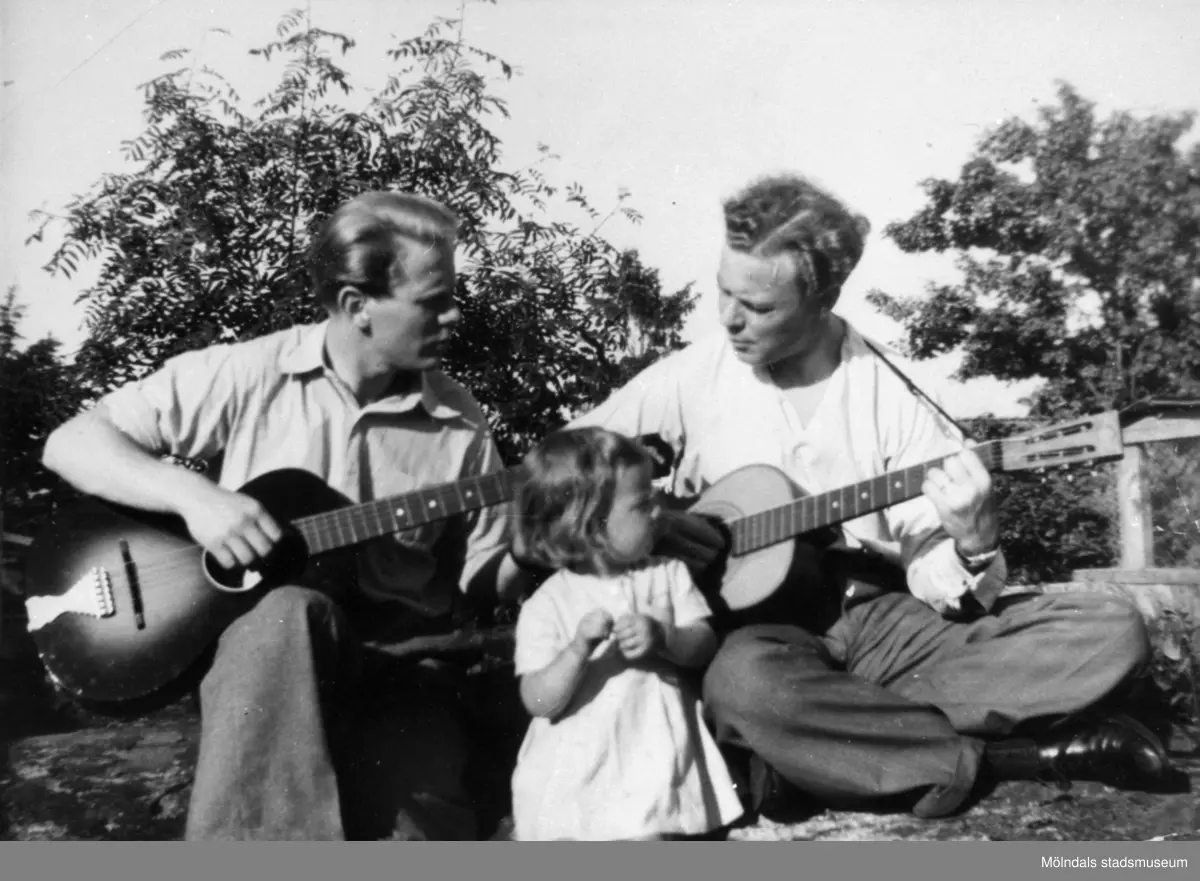 Gitarrspel av bröderna Stig och Claes Alberts samt systerdottern "Stintan" Gullers i Tulebo, 1940-tal.
