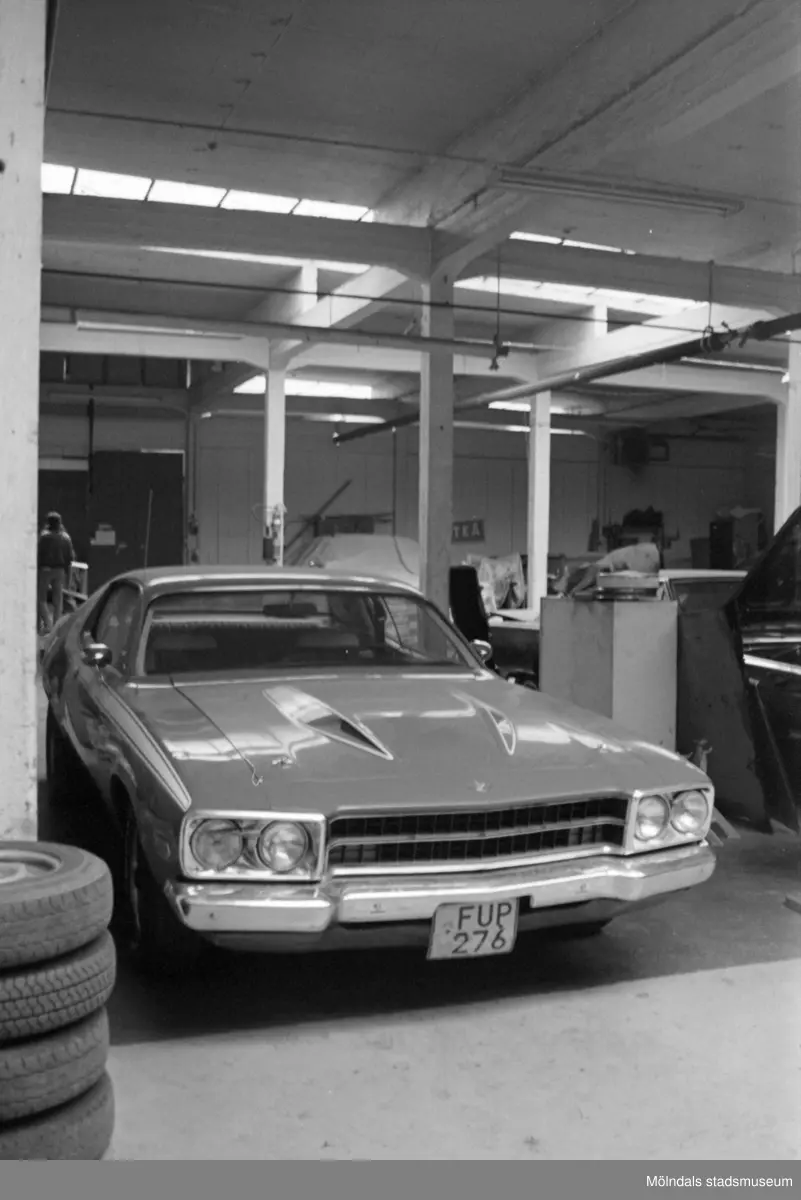 Kvarnfallet 31 i Mölndal, Carlsfors fabrik. En bil i en bilverkstad.