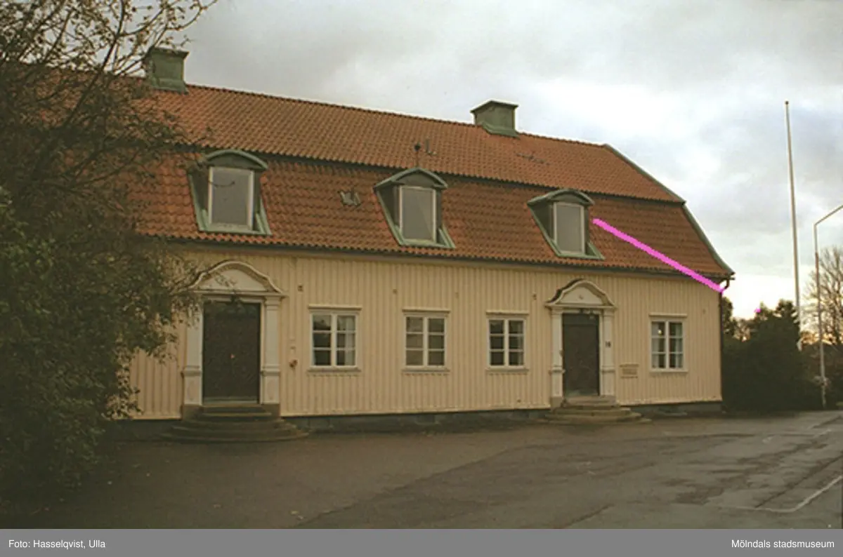 Byggnadsdokumentation av kontorsbyggnaden Kopparfors inom Papyrusområdet, Privatvägen 16, Forsåker 1:122 i Kvarnbyn, 1998. 1920-talsvillans entrésida.