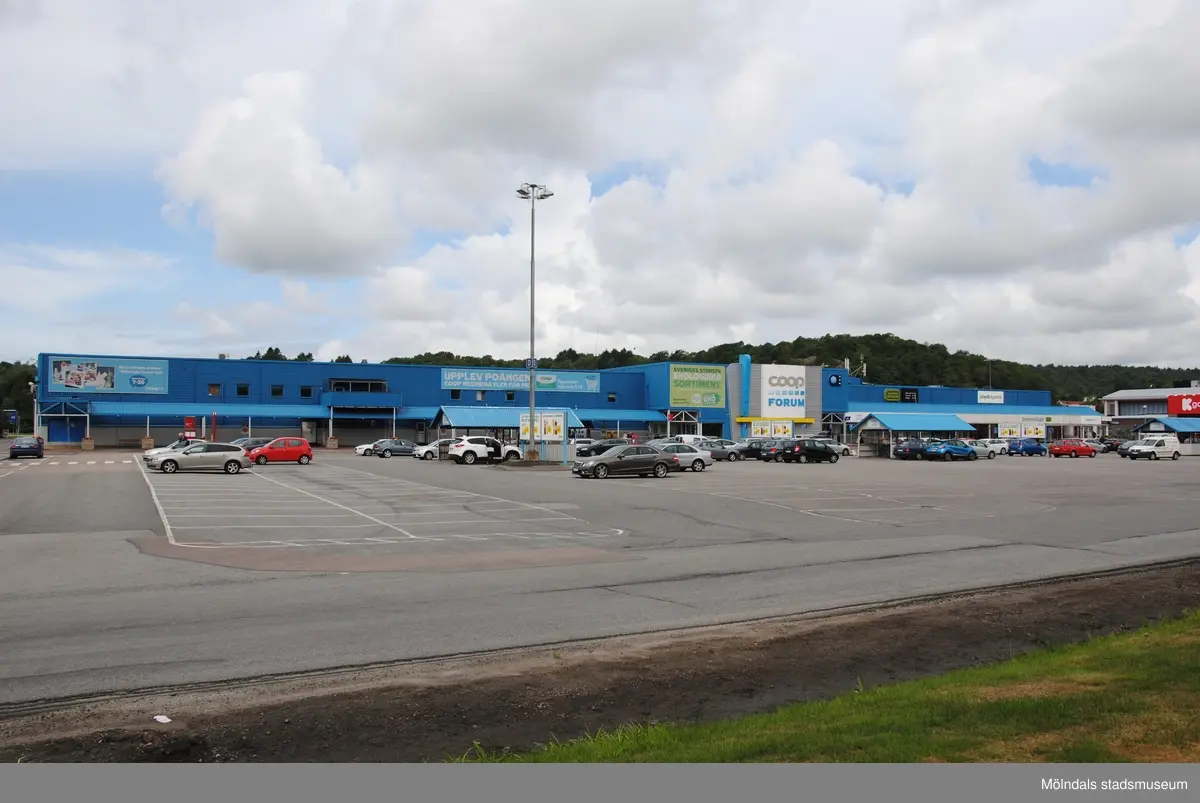 Titel: Byggnadsdokumentation av varuhuset Coop Forum i Kållered med adress Ekenleden 4, Våmmedal 2:158, som fått rivningslov. Exterörfotografi från öster den 5/7 2016.