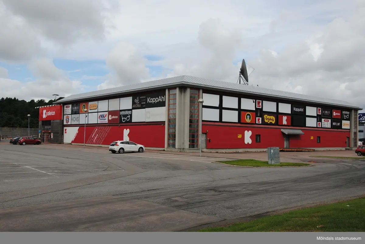 Byggnadsdokumentation av affärscentrum K-gallerian i Kållered med adress Ekenleden 6, Våmmedal 2:158, som fått rivningslov. Exterörfotografi från söder den 5/7 2016.