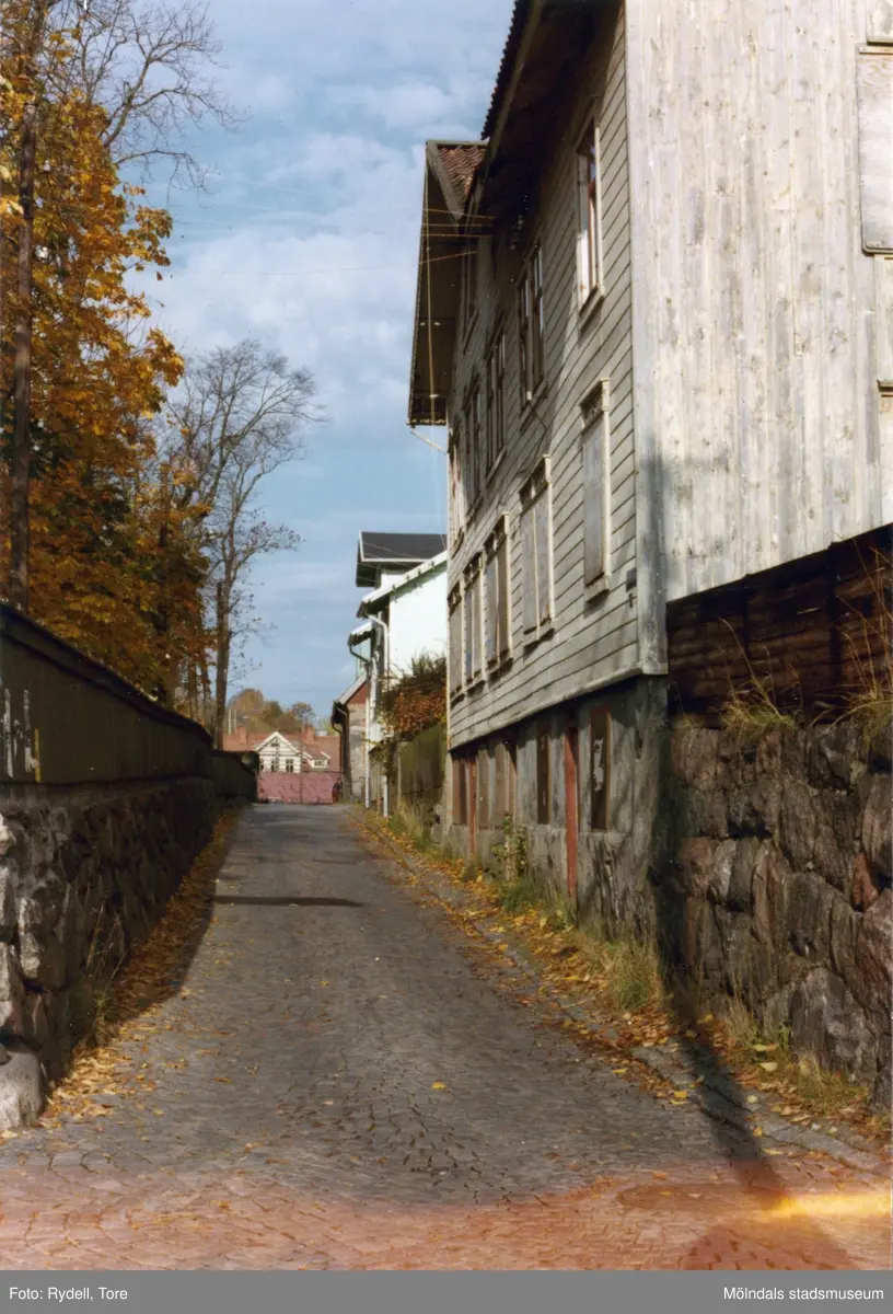Vy från Forsåkersgatan i Forsåker, Mölndal, på 1970-talet. Närmast ses nr 37, "Justuses hus".
