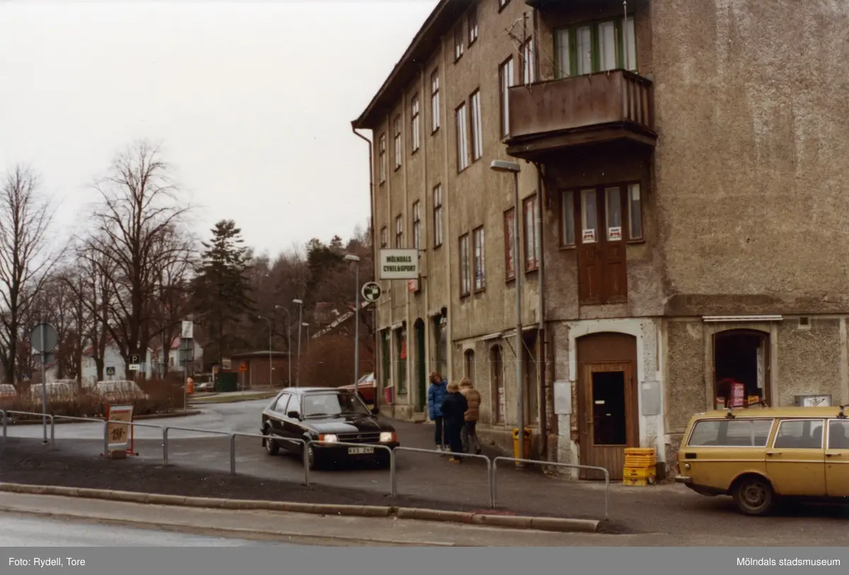 Annas affär i huset Trädgårdsgatan 4 i Trädgården, Mölndal, på 1970-talet. Vy från Kvarnbygatan.