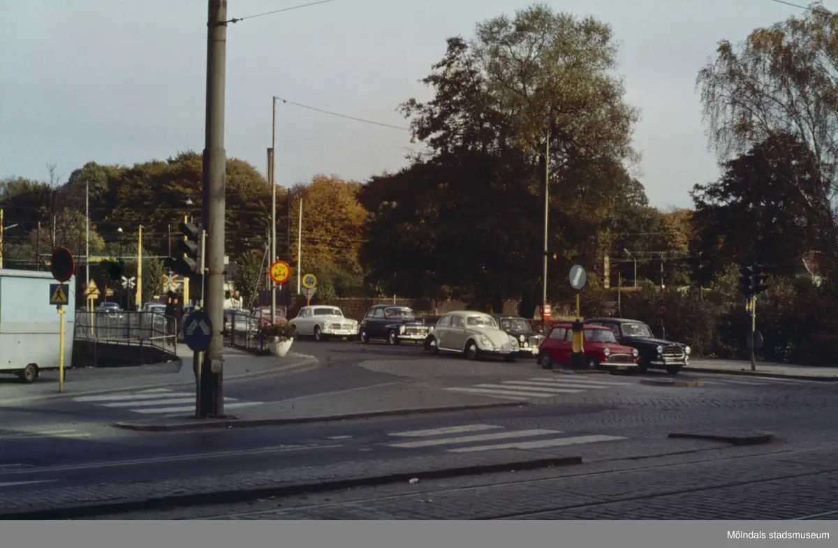 Vy från Göteborgsvägen mot gamla Mölndals Bro i Mölndal, 1960-tal.