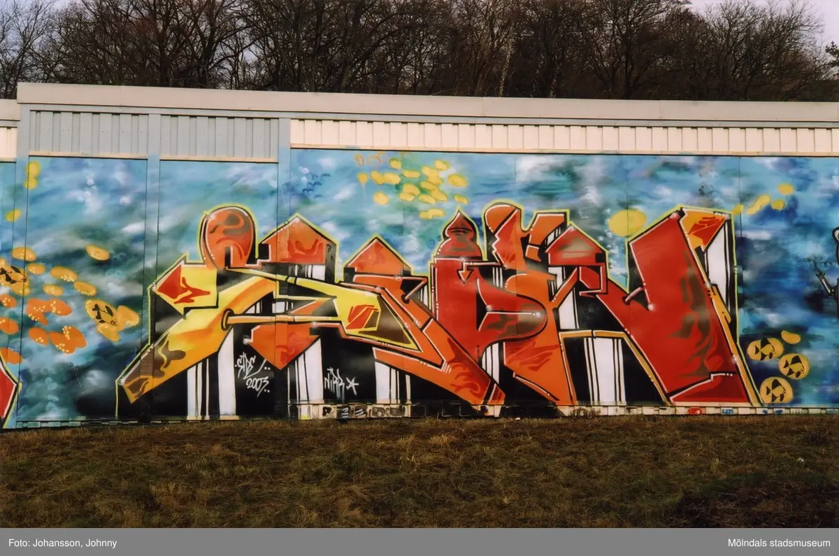 Graffiti längs Kvarnbygatan i Mölndal, år 2003.