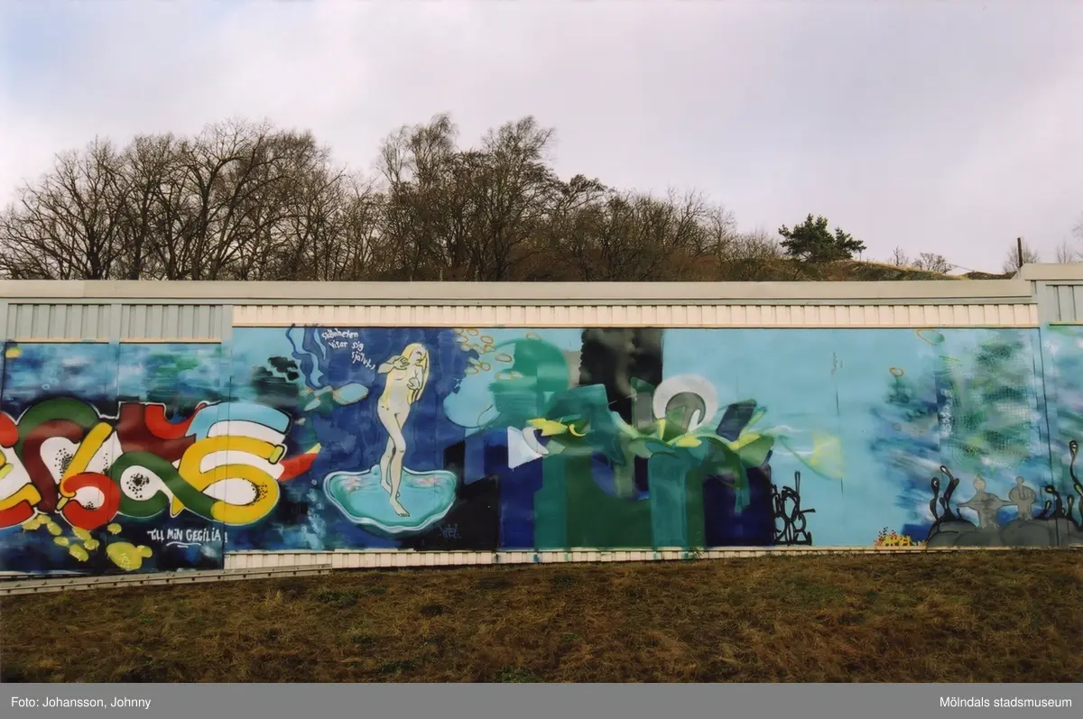 Titel: Graffiti längs Kvarnbygatan i Mölndal, år 2003.