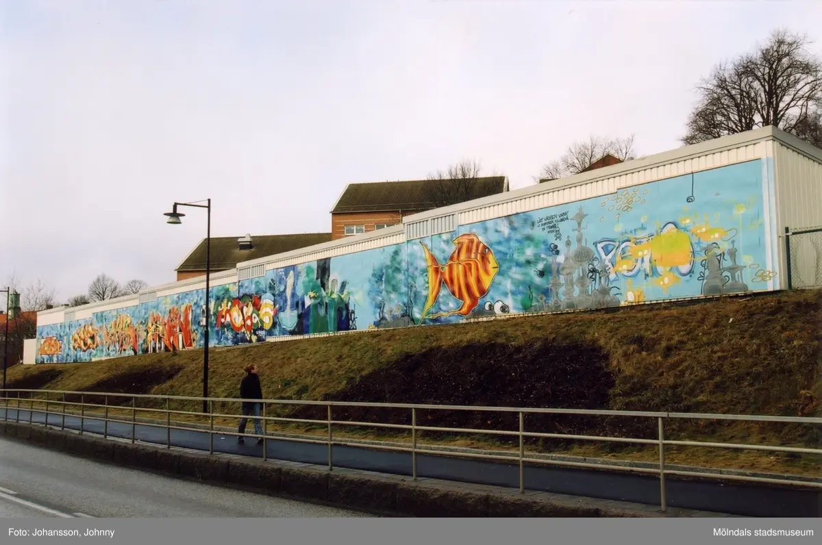 Graffiti längs Kvarnbygatan i Mölndal, år 2003.