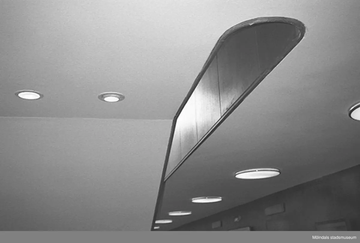 En del av taket och dess belysning i Mölndals stadshus, juni 1994.