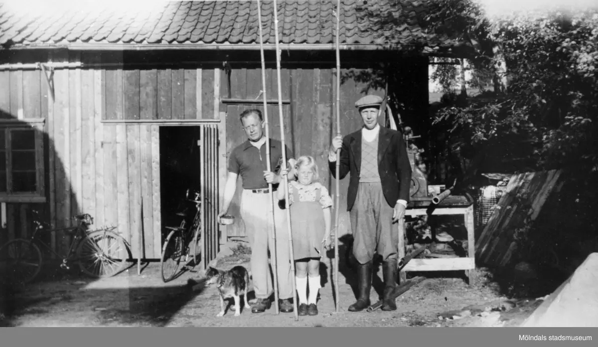 Nyberg, Astrid och Sigfrid utanför hos Anton Svensson i Bäck, cirka 1940- till 50-talet.
