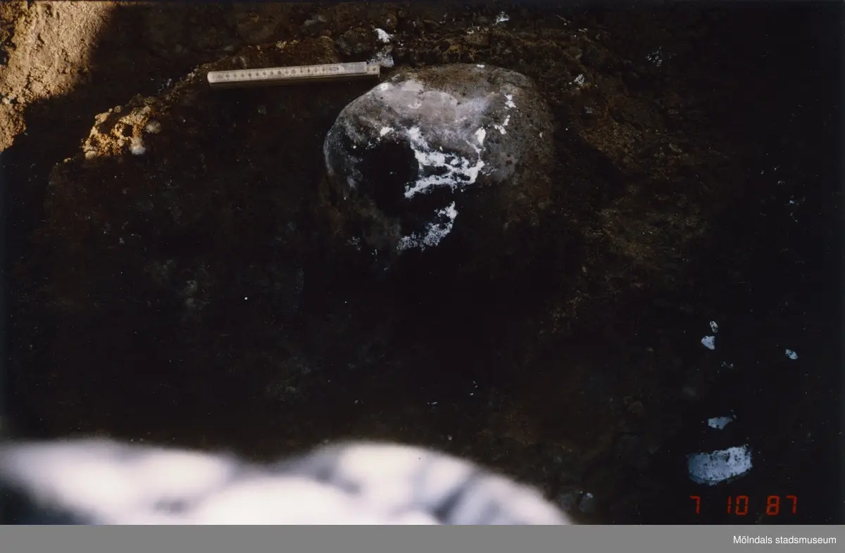 Arkeologisk utgrävning i Balltorp innan industribyggen. Utförd av arkeolog Bengt Nordkvist 1987.