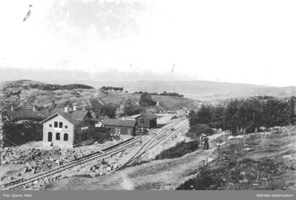 Vy över Mölndals övres station och järnvägen till Borås, under byggnad sommaren 1894.