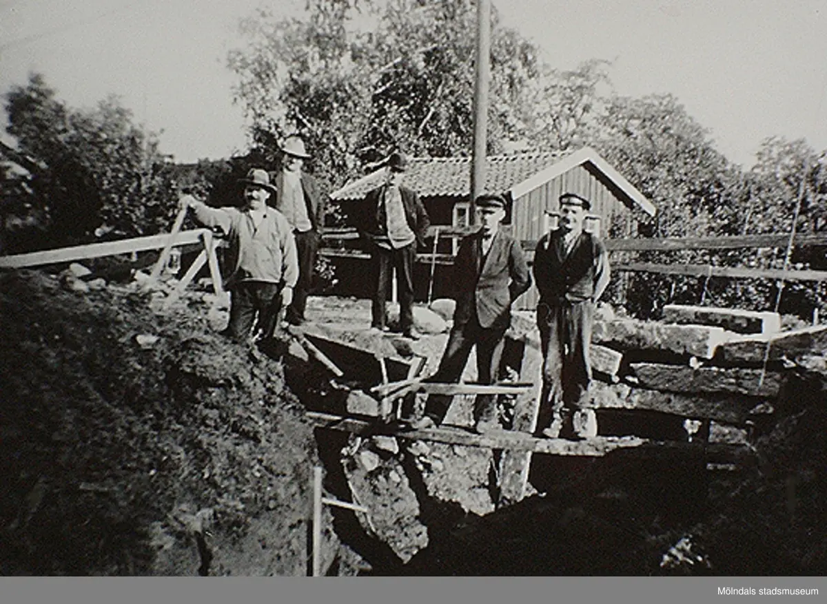 Läggning av stentrumma vid smedjan i Kärrabro 1932