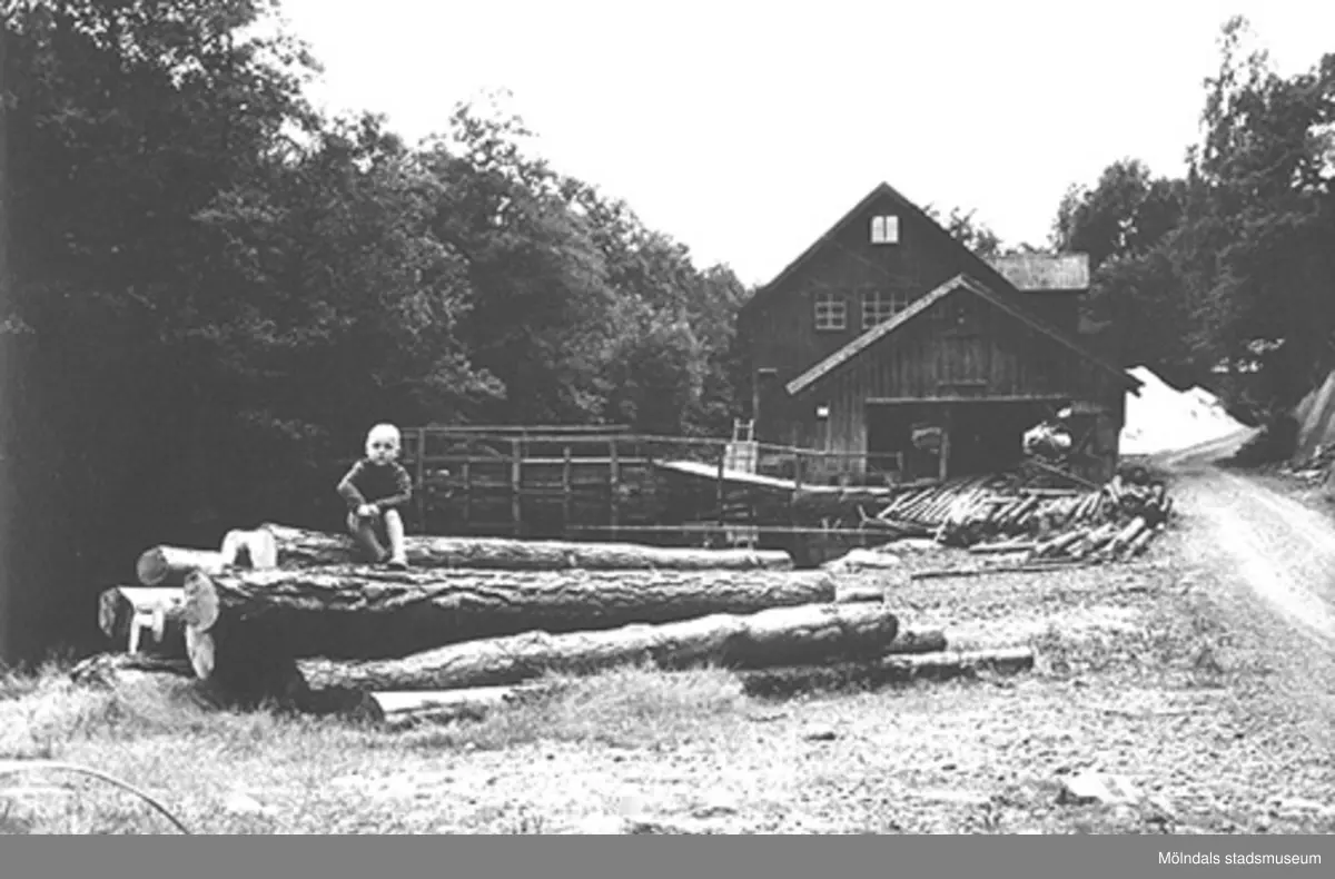 Dammen och sågtimmerupplag vid Ålgårdsbacka kvarn. Fotograf och årtal okänt.