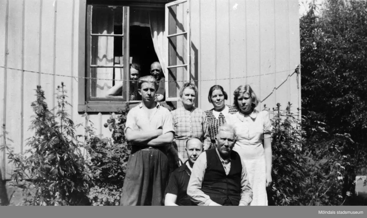 Sommargäster, släkt och vänner utanför Antons hus,