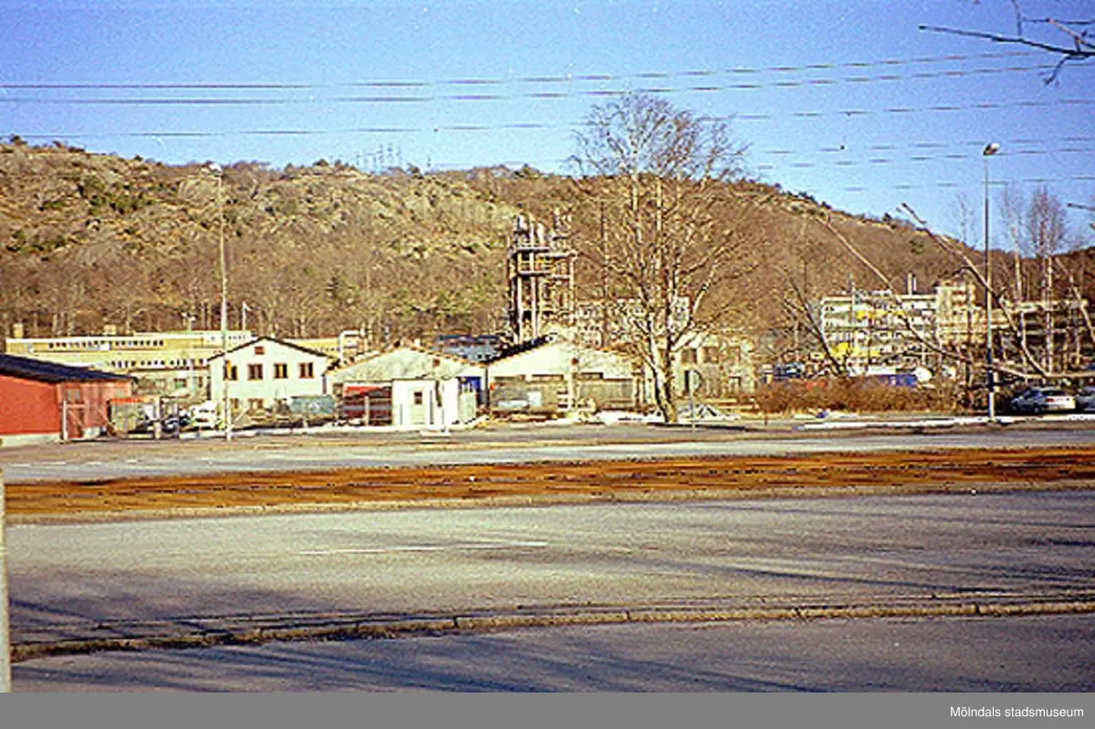Titel: Byggnadsdokumentation av Akzo Nobel på Ågatan 44 i Lackarebäck, 2000-02-15. Rallarberget ses i bakgrunden.