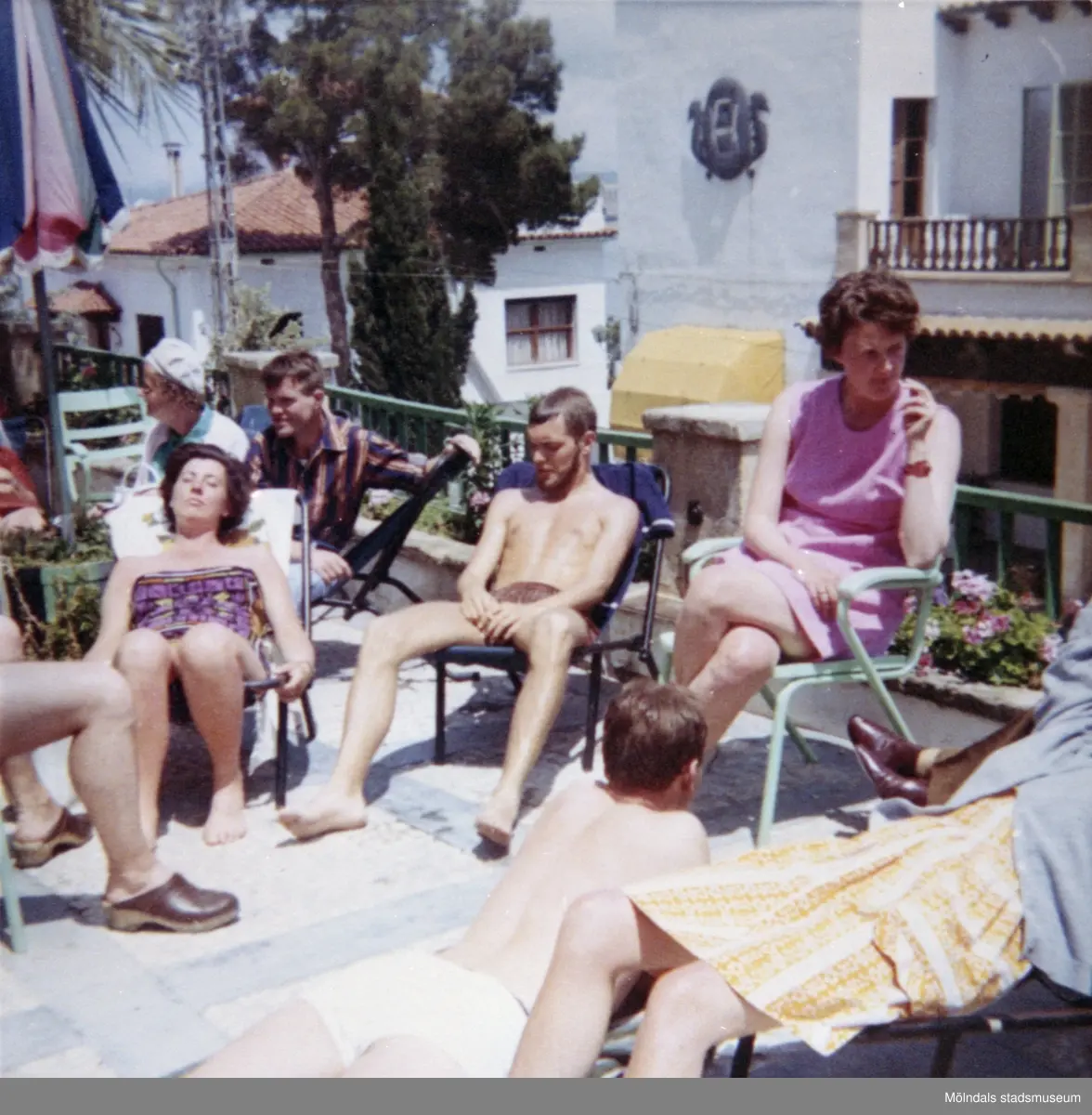 Solande på en terrass. Semesterresa med elever från Streteredshemmet på 1970-talet.